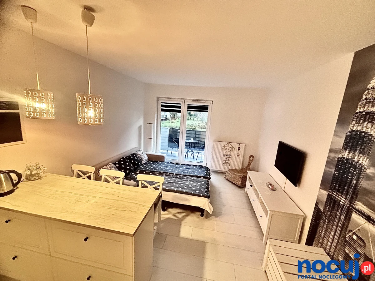 Apartament, ul Kujawska 9 -salon z kuchnią , balkon, prywatny mały taras przed wejściem, łazienka + pralka, miejsce parkingowe bezpłatne. Obok zielony rynek- świeże warzywa i owoce.