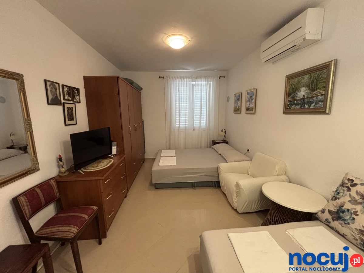 Salon 4- osobowy, podwójne łóżko dla dwóch osób oraz kanapa rozkładana dla 2 osób, TV SAT, szafa, jadalnia, klimatyzacja, internet