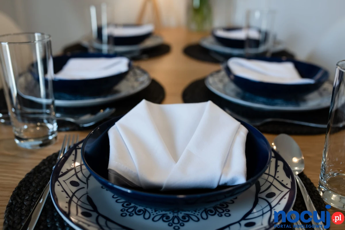 aneks kuchenny w pełni wyposażony dla 6 osób (garnki, patelnie, zastawa stołowa, sztućce, kieliszki, szklanki, niezbędne przybory kuchenne, talerze i sztućce dla dzieci itp.) lodówka, zamrażarka, płyta indukcyjna, czajnik elektryczny, mikrofalówka, zmywarka, (tabletki do zmywarki) , pralka, piekarnik z funkcją mikrofali, ekspres do kawy, kawiarka, toster, kawa, herbata, cukier , sól, pieprz